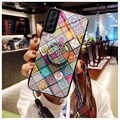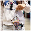 Checkered Pattern Hybrid Case with Stand and Lanyard for Samsung Galaxy S21 5G
