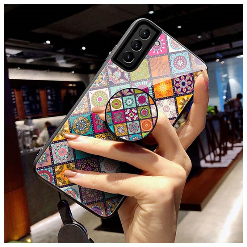 Keep your Samsung Galaxy S21 5G free from scratches and bumps using this Checkered Pattern hybrid case. This colorful flower print is here to make your Samsung Galaxy S21 5G superstylish and supermodern. It is designed with a kickstand for more accessible watching videos and one-hand operation. Also, it comes with a lanyard that makes carrying much easier when you are in a crowd. This case is made of a combination of three materials: soft TPU, hard plastic, and glass. Unique and durable, fascinating - this hybrid case with its lanyard and stand is an excellent choice for your beloved Samsung Galaxy S21 5G.