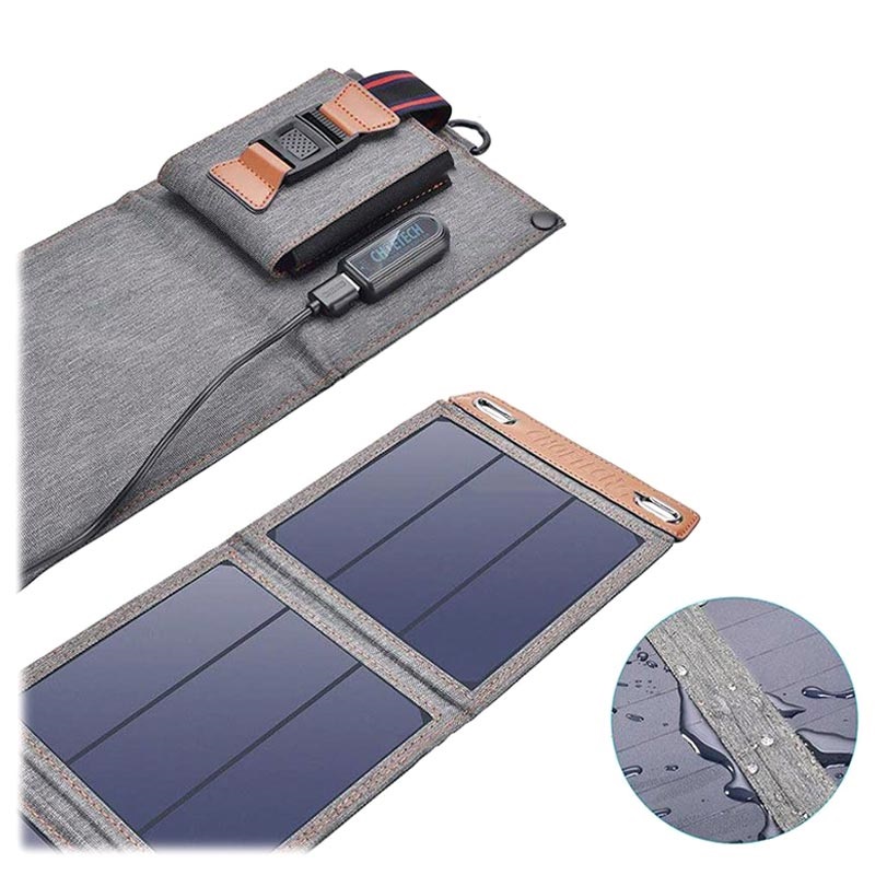 Choetech solar panel with a total power of 14W can safely and efficiently charge your devices via USB-A port. Quickly juice up your smartphone, tablet, GPS tracker, digital camera, MP3 player, or power bank using just the energy from the sun. A built-in smart chip automatically detects the connected device and delivers optimal power to ensure secure charging. The Choetech solar charger is ideal for all outdoor activities such as camping, hiking, and cycling, and thanks to waterproof panels, you can then carry it on your backpack in all weather conditions.