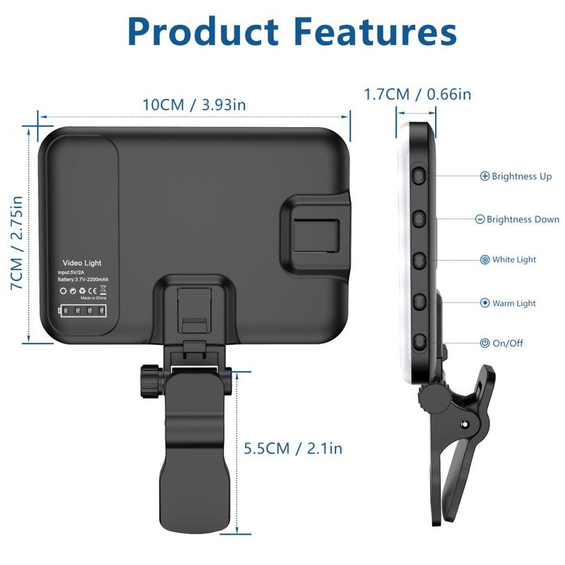 Equipped with a 2200mAh rechargeable battery, this LED fill light provides extended operation for vlogging, streaming, or photography sessions without constant recharging.