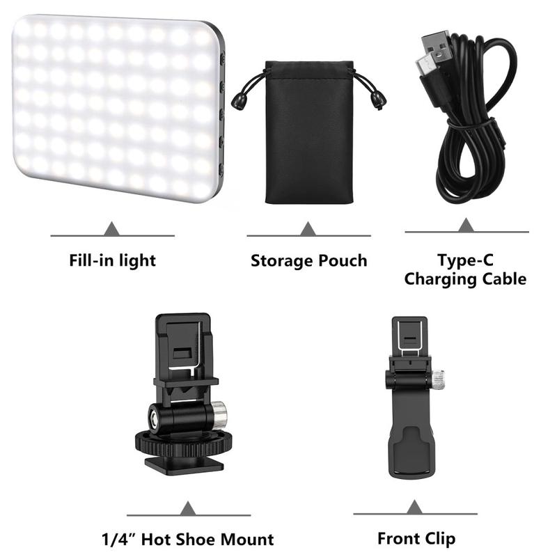 Rechargeable 60-LED Dimmable Fill Light - 3-Mode Selfie & Live Streaming Video Lamp for Phone, Camera & Computer
