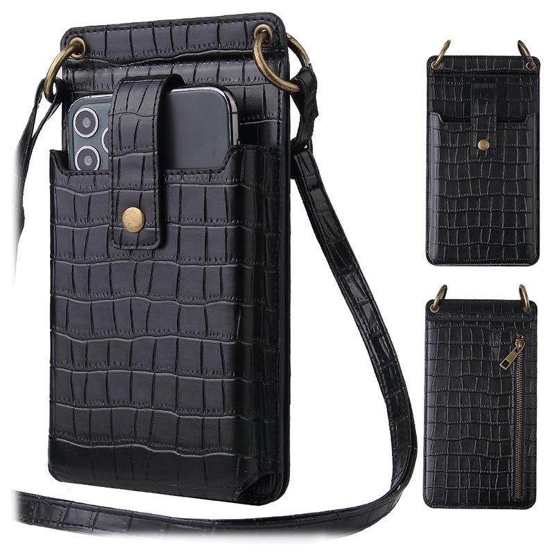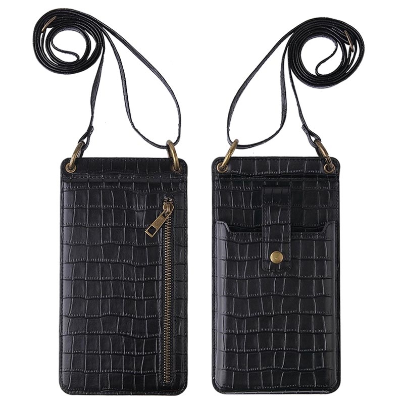 Crocodile Pattern Crossbody Bag with Makeup Mirror for Smartphone