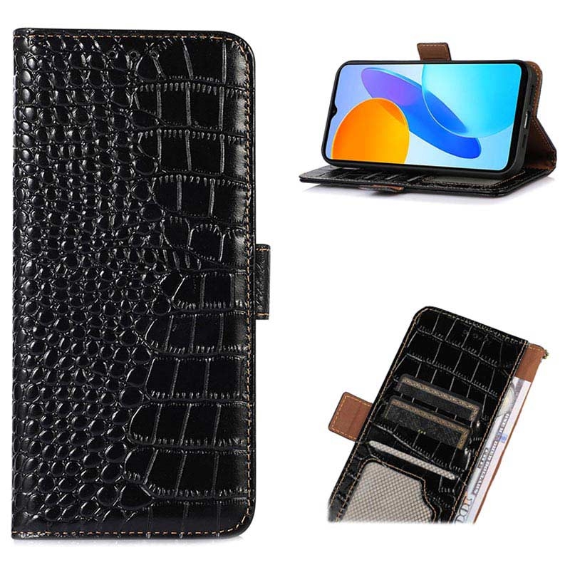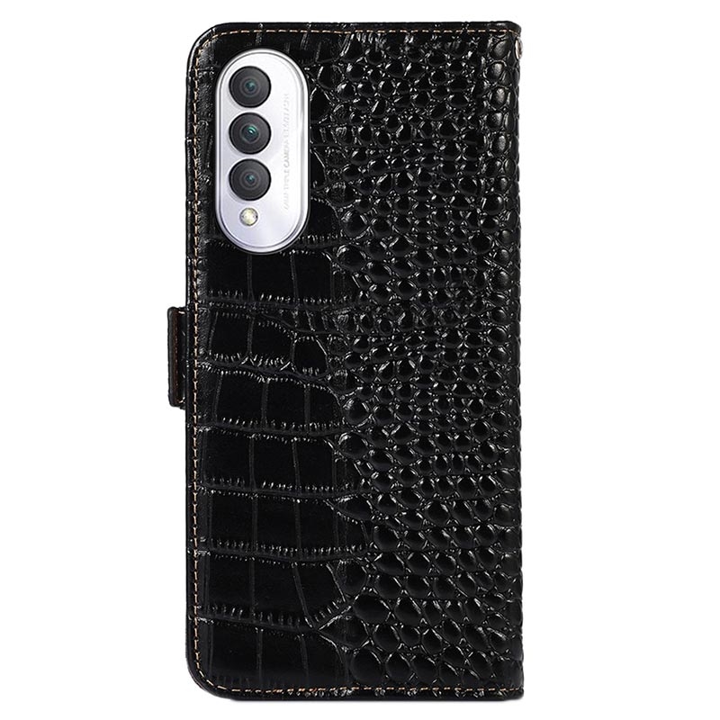 A lightweight and soft wallet case with a unique crocodile texture, the perfect choice to protect your Honor X20 SE and keep it undamaged. It's made of high-quality genuine leather and inner TPU material, designed with three card slots, an ID slot, and a pocket for cash, ideal for carrying your essentials next to your Honor X20 SE. Also, RFID technology effectively blocks signals and keep's your data secured.
