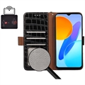 Keep all your credit cards, ID, and cash in the same place with your Honor X8 in this sublime Crocodile series wallet case with RFID blocking technology. The case contains a couple of card slots, an ID slot, and a money pocket. Thanks to the magnetic clasp enclosure, your valuables will be safe. The wallet case is made of high-quality cowhide and will protect your Honor X8 from daily damage.