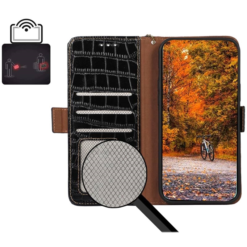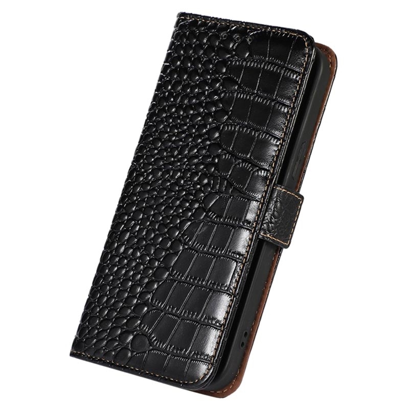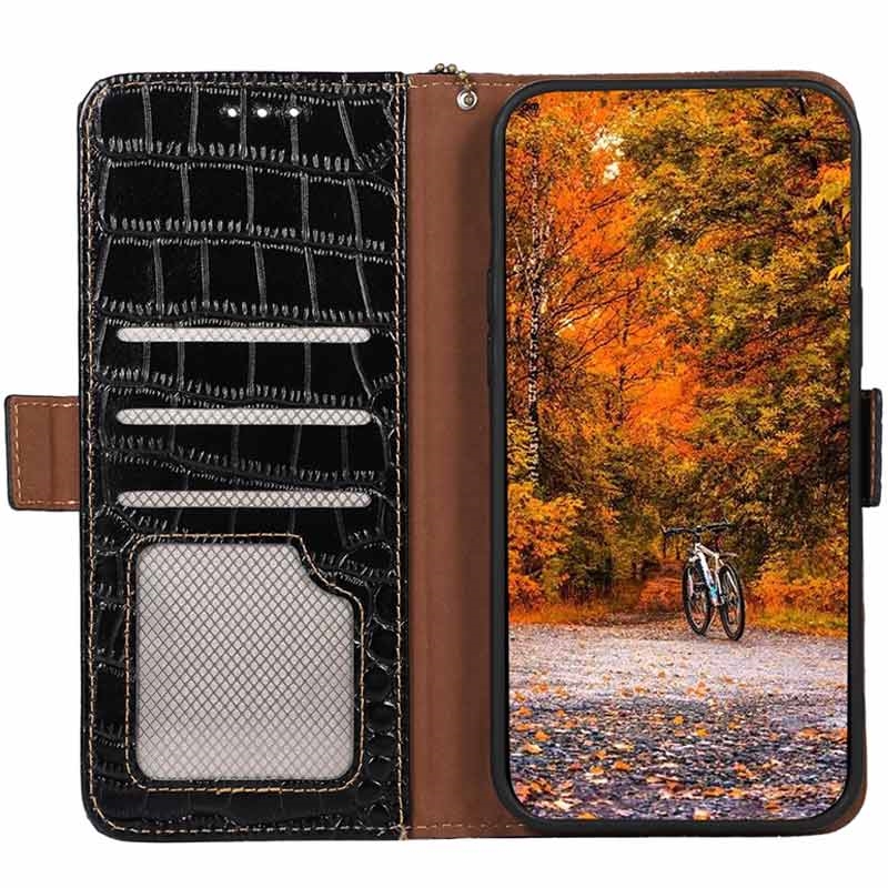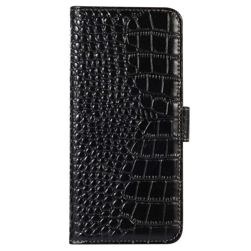 Keep your essentials safe next to your Motorola Moto G53 in this fantastic wallet leather case with RFID blocking technology. The crocodile wallet leather case has two card slots, one photo slot, and one pocket for cash, which is ensured with a dual magnetic clasp. Protect your Motorola Moto G53 from everyday damage while RIFD technology efficiently blocks unwanted signals and keeps your data safe.