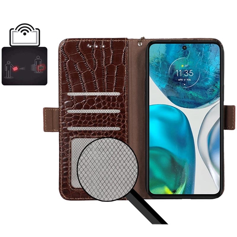 A lightweight and soft wallet case with a unique crocodile texture, the perfect choice to protect your Motorola Moto G73 and keep it undamaged. It's made of high-quality genuine leather and inner TPU material, designed with three card slots, an ID slot, and a pocket for cash, ideal for carrying your essentials next to your Motorola Moto G73. Also, RFID technology effectively blocks signals and keep's your data secured.