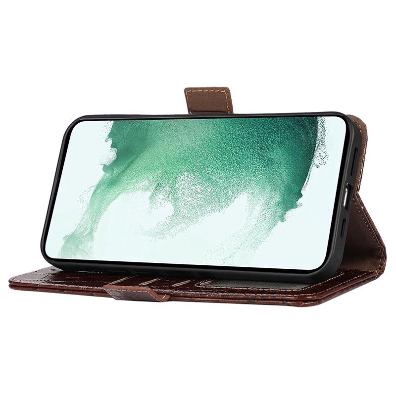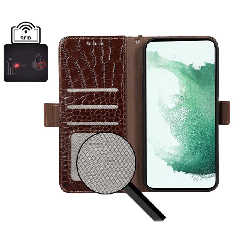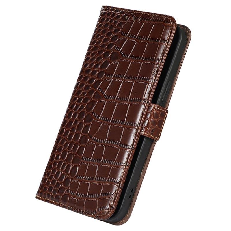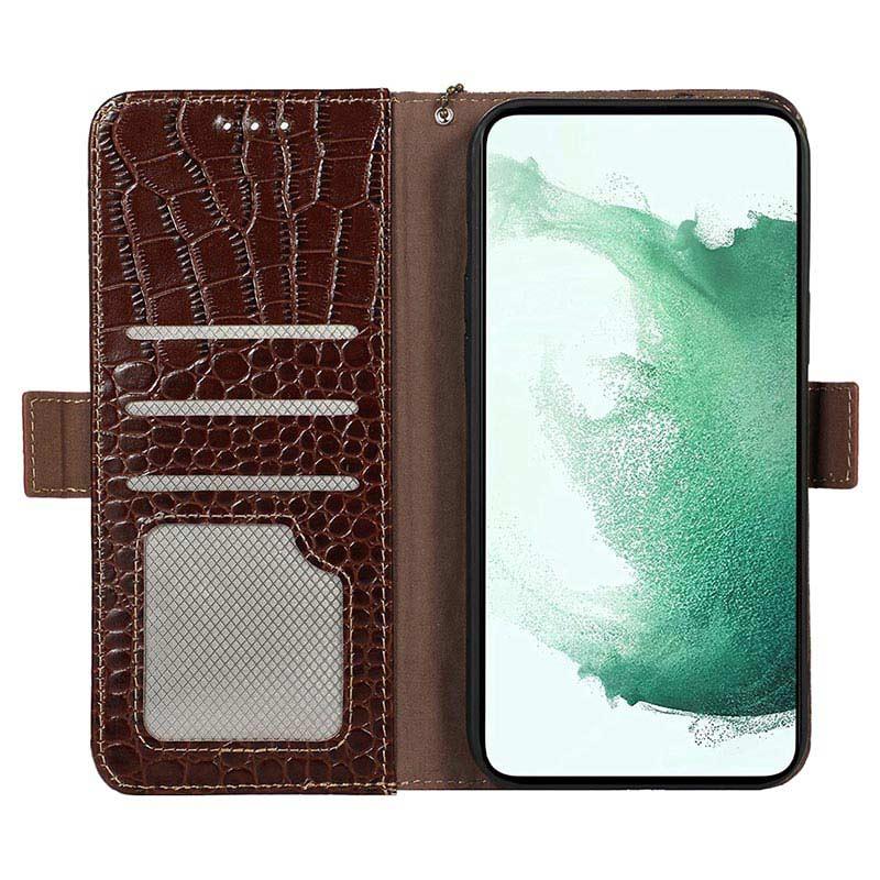 Keep all your credit cards, ID, and cash in the same place with your Motorola Moto S30 Pro in this sublime Crocodile series wallet case with RFID blocking technology. The case contains a couple of card slots, an ID slot, and a money pocket. Thanks to the magnetic clasp enclosure, your valuables will be safe. The wallet case is made of high-quality cowhide and will protect your Motorola Moto S30 Pro from daily damage.
