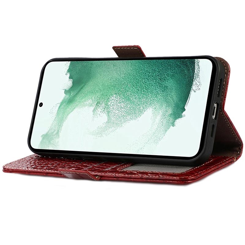 Keep your essentials safe next to your Samsung Galaxy A53 5G in this fantastic wallet leather case with RFID blocking technology. The crocodile wallet leather case has two card slots, one photo slot, and one pocket for cash, which is ensured with a dual magnetic clasp. Protect your Samsung Galaxy A53 5G from everyday damage while RIFD technology efficiently blocks unwanted signals and keeps your data safe.
