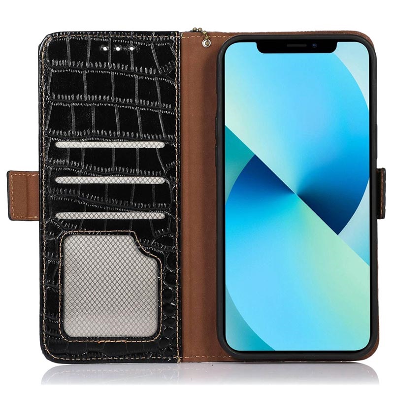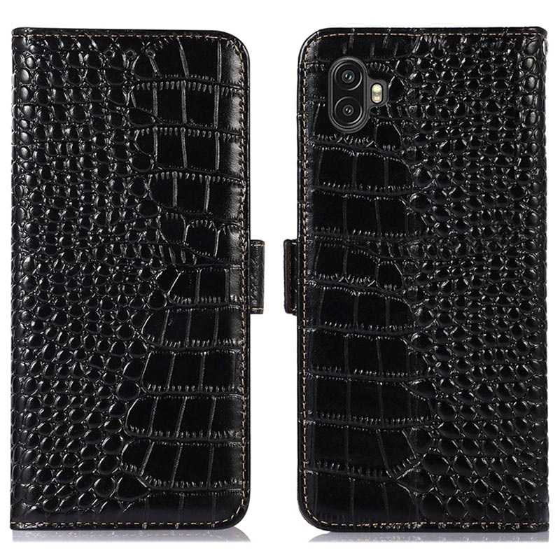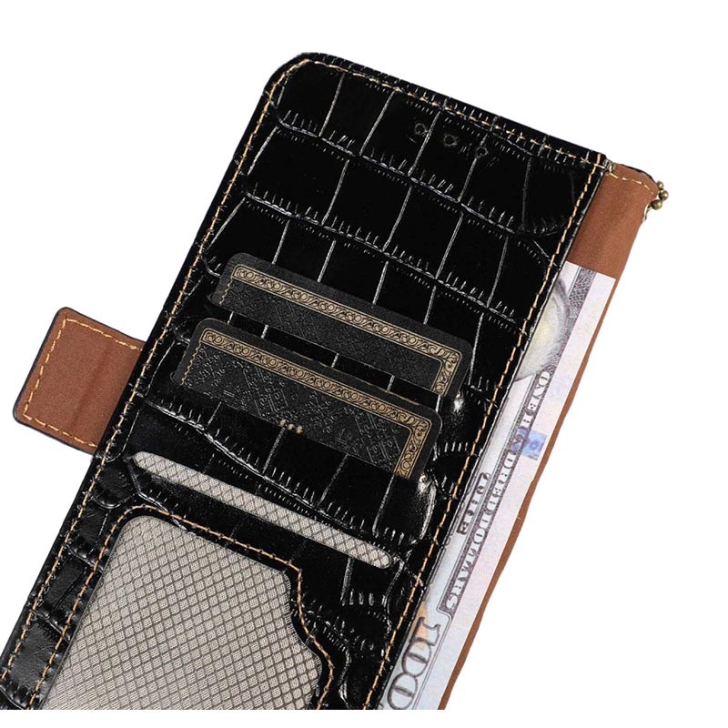 Keep all your credit cards, ID, and cash in the same place with your Samsung Galaxy Xcover6 Pro in this sublime Crocodile series wallet case with RFID blocking technology. The case contains a couple of card slots, an ID slot, and a money pocket. Thanks to the magnetic clasp enclosure, your valuables will be safe. The wallet case is made of high-quality cowhide and will protect your Samsung Galaxy Xcover6 Pro from daily damage.
