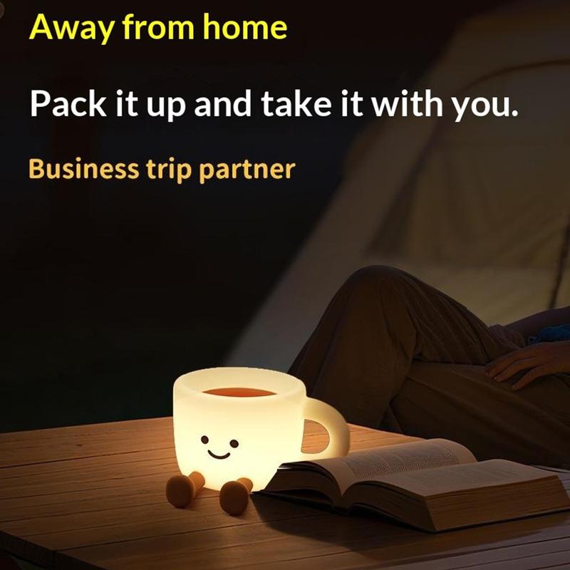 Add cosy vibes to any room with this cute coffee cup shape night light—a fun bedside lamp that also works as a phone stand and portable mood light. With 7 colour-changing LED options and 3 brightness levels, it's perfect for relaxing evenings, a soft night glow, or creating ambience for photos and video. Simple tap control makes it effortless to use, while the 30-minute auto-off timer helps save energy and prevents the light from staying on all night. Made from soft, food-grade silicone, it feels pleasant to touch and can even double as a stress-relief squeeze toy. Rechargeable via USB-C, it's easy to take along for travel, camping, or cosy setups anywhere.