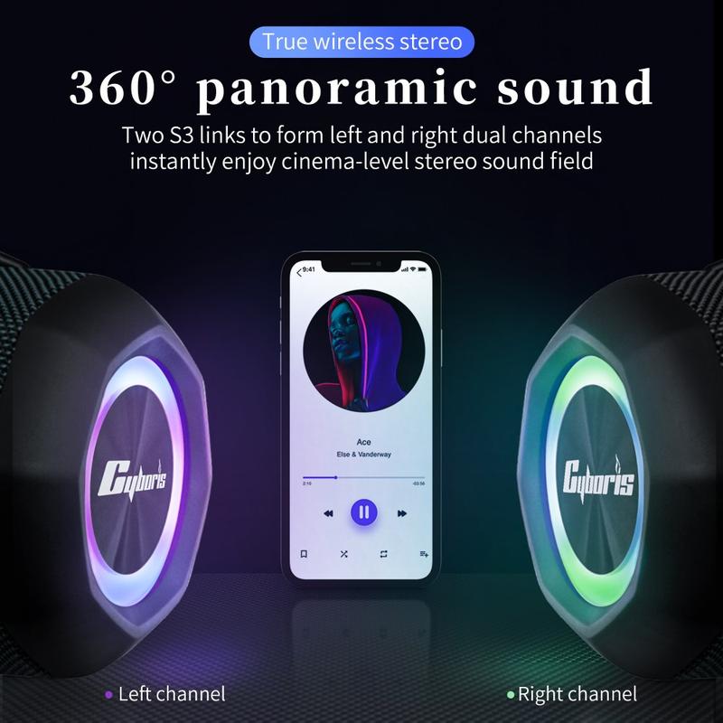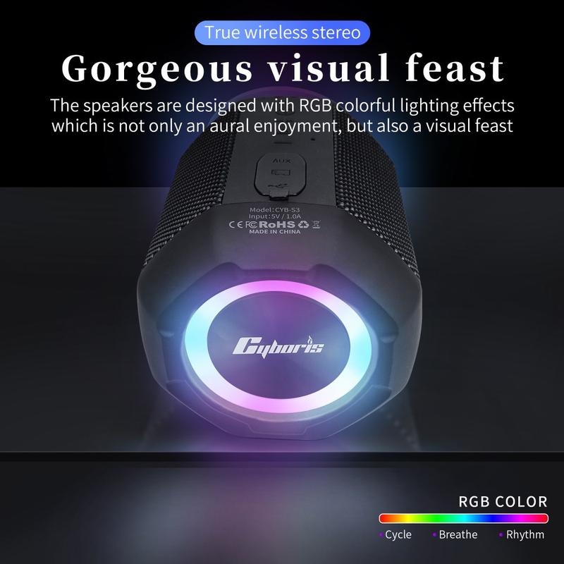 CYBORIS CYB-S3 Bluetooth 5.1 Wireless Speaker 24W Impressive Sound Stereo Bass 18Hrs Playtime RGB Light Subwoofer Sound Box - Black