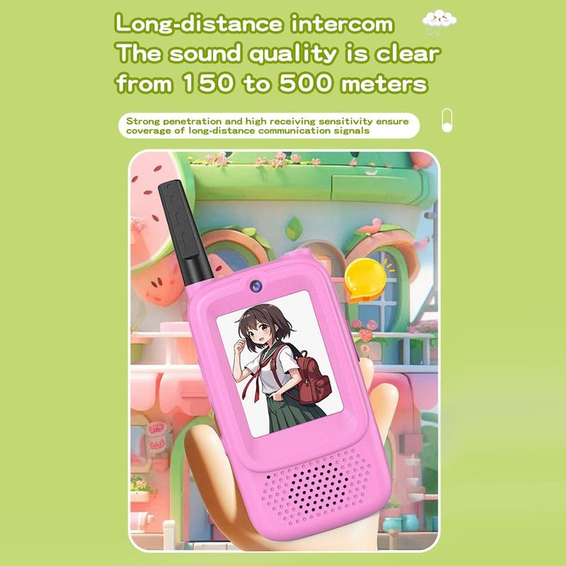 The D3 kids video intercom walkie talkie bring a new level of fun and safety to children’s communication. Designed with a built-in HD camera and a 2.0-inch IPS display, they allow real-time face-to-face video chat between kids and parents—without WiFi, apps or complicated setup. Simply power them on, and the devices automatically pair, making them perfect for even the youngest users.