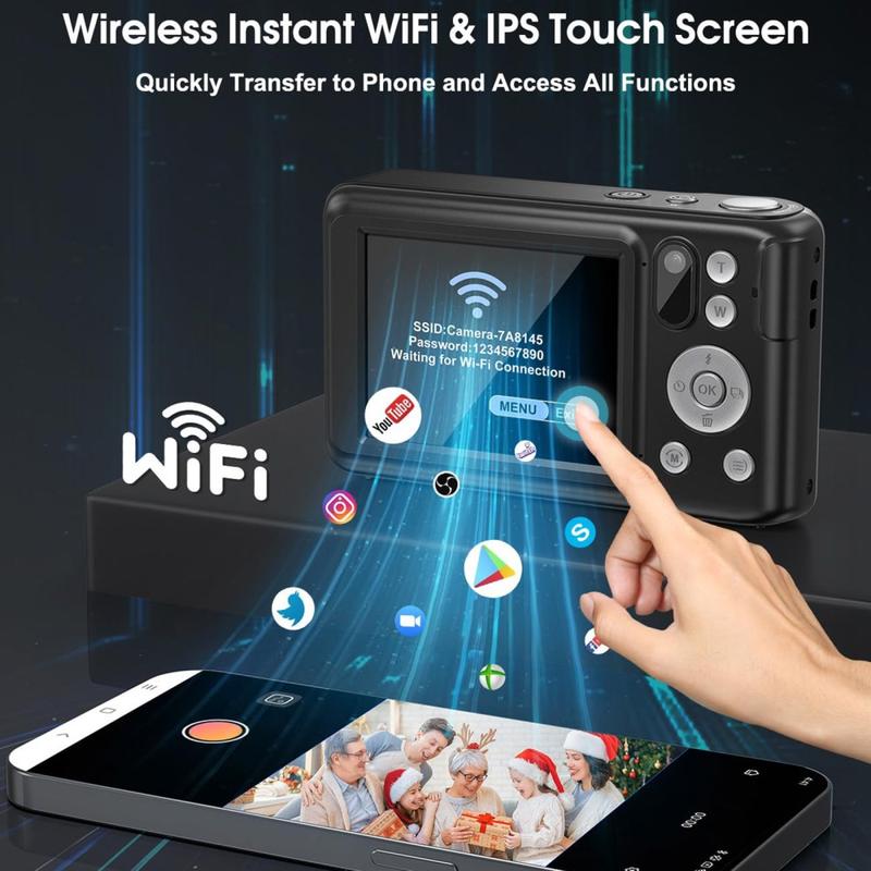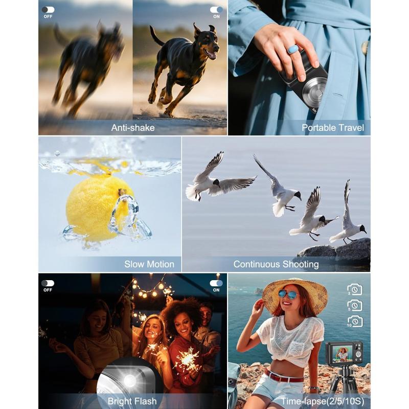 The DC309X mini digital camera combines dual high-resolution lenses, 6X optical zoom and advanced stabilization to deliver exceptional photos and videos in a compact, portable design. Equipped with a professional-grade GC8613 800W front sensor and a rear Sony IMX214 13MP selfie lens, this camera ensures sharp details for landscapes and perfect clarity for self-portraits. Its 2.8-inch IPS HD touch display offers clear viewing and intuitive control.