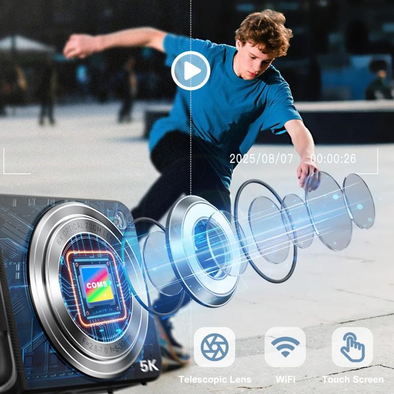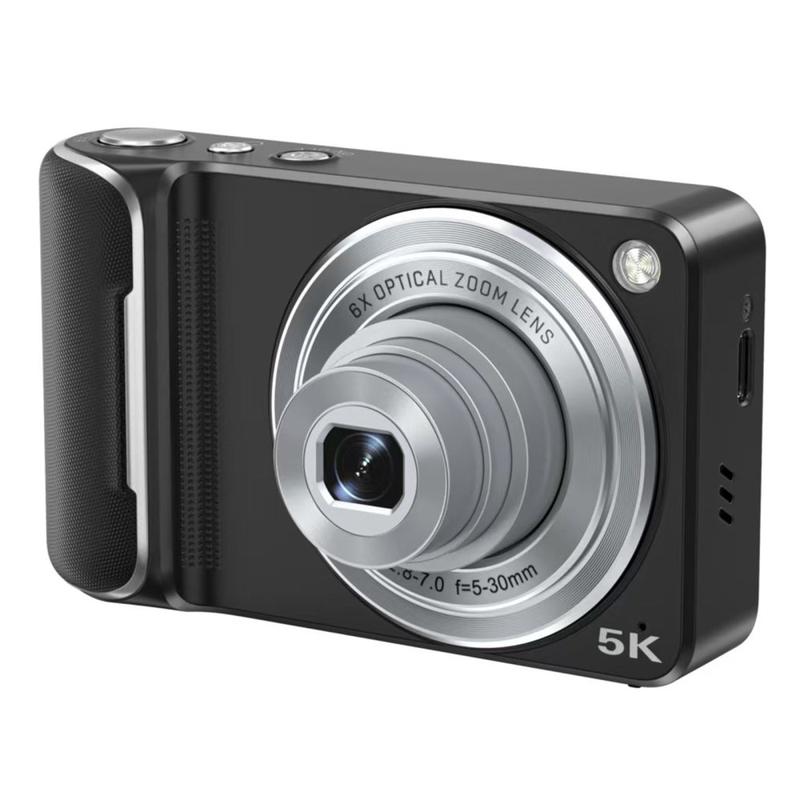 • DC309X Mini Digital Camera - 6X Optical Zoom, Dual Lens 5K Video Recorder with 32GB Card and 2 Batteries
