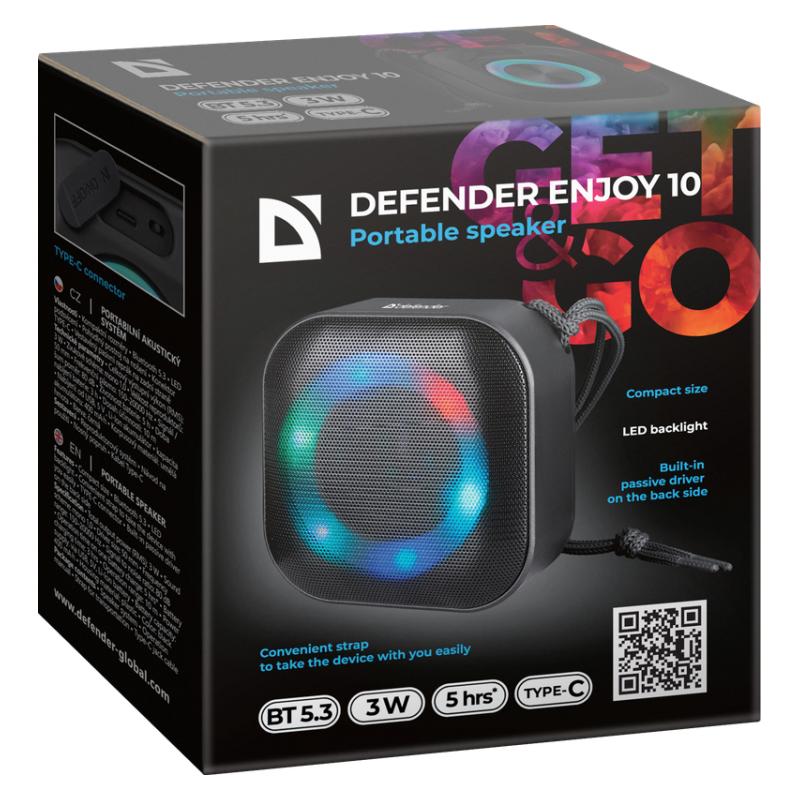 Defender Enjoy 10 Portable Bluetooth 5.3 Speaker – Travel-Friendly with LED Backlight & Passive Driver