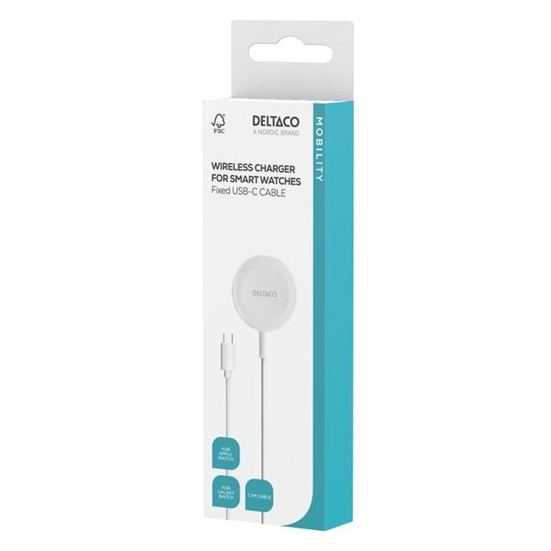 Deltaco Magnetic Wireless Charger for Apple Watch/Galaxy Watch - with 1m USB-C Cable