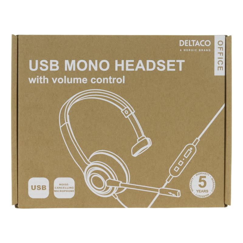 Deltaco Noise Cancelling USB Mono Headset for Customer Service