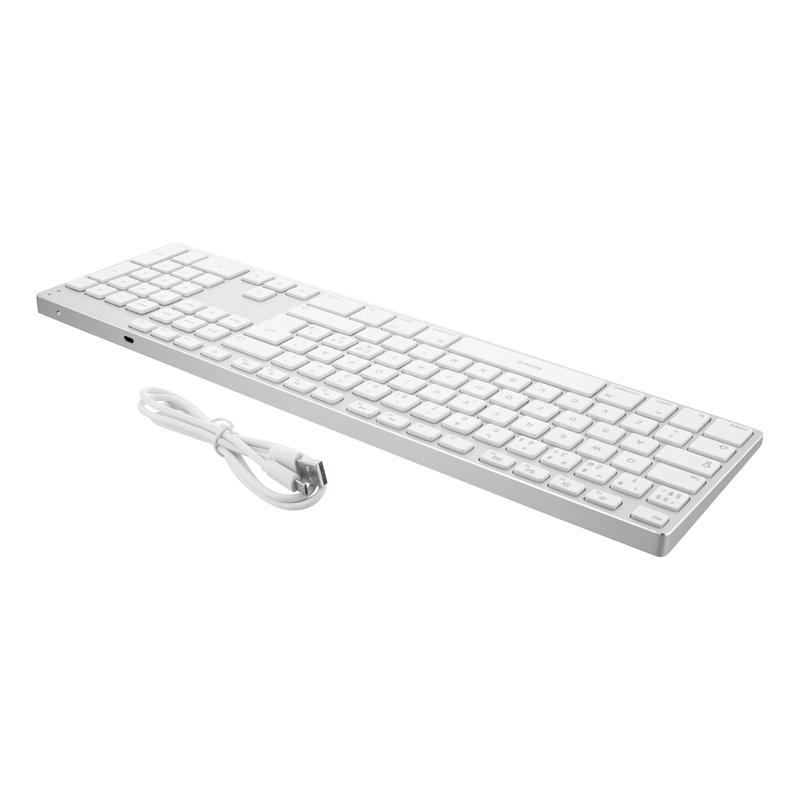 Elevate your typing experience with our sleek and stylish aluminum keyboard, featuring a built-in 350 mAh rechargeable lithium battery. This PAN-Nordic layout keyboard is not only visually appealing but also designed for enhanced functionality. The keys rest on scissor switches, commonly found in laptop keyboards, providing a comfortable and responsive typing experience. The keyboard boasts a contemporary aluminum construction that enhances both its aesthetics and durability. Built-in Rechargeable Battery: With a 350 mAh rechargeable lithium battery, you can enjoy extended usage without the hassle of constantly replacing batteries. Seamlessly connect up to three devices simultaneously, allowing you to switch between devices with ease. Perfect for those who work across multiple platforms.