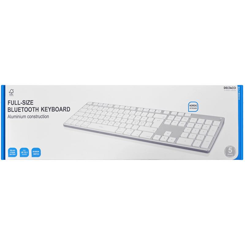 Deltaco TB-402 Fullsize Bluetooth Aluminum Keyboard - Nordic