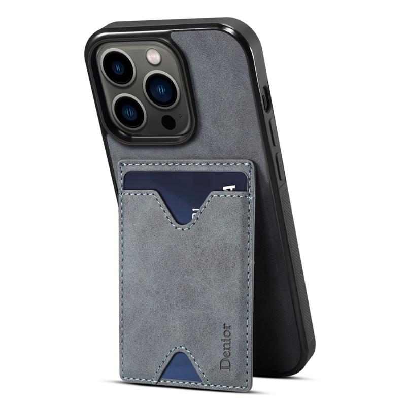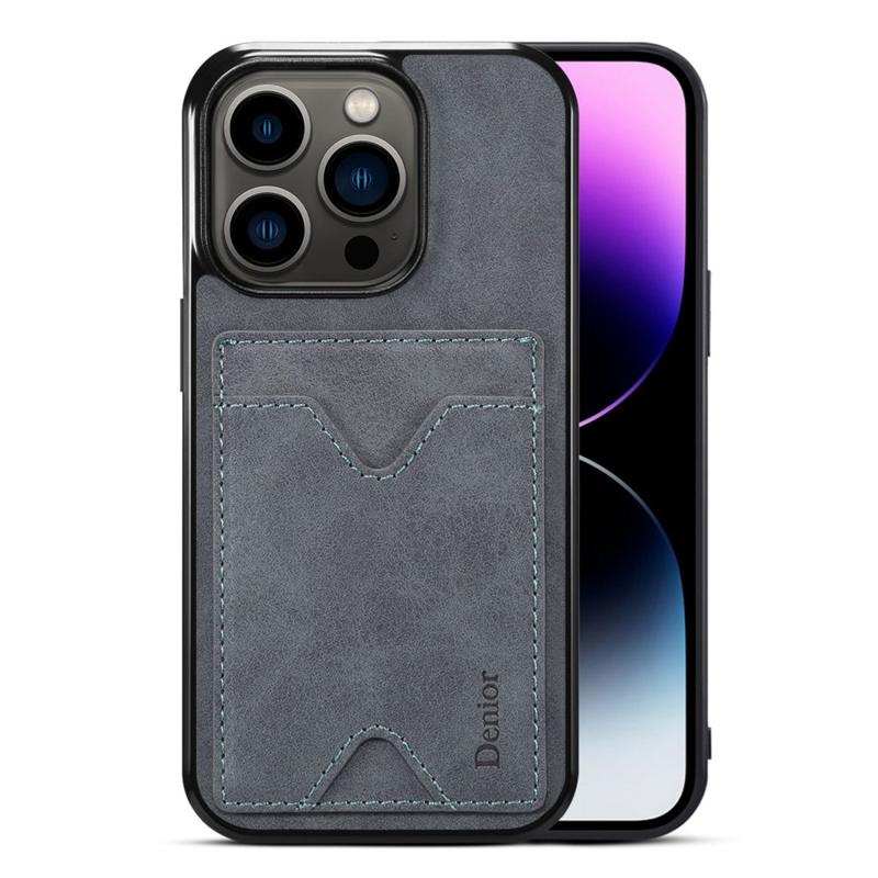 Denior Card Holder Kickstand iPhone 14 Pro TPU Case - Grey