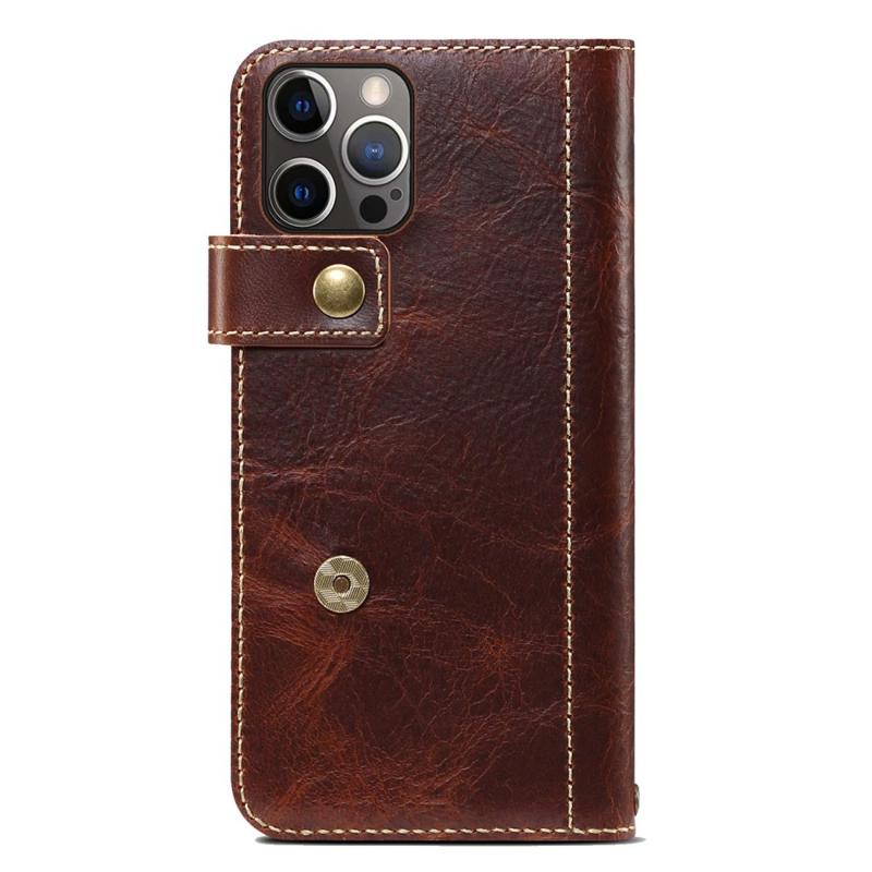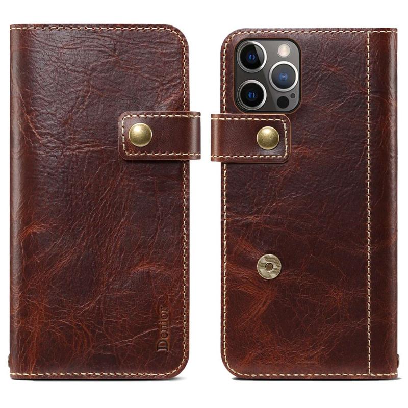 Denior Vintage Series iPhone 14 Pro Wallet Leather Case - Brown