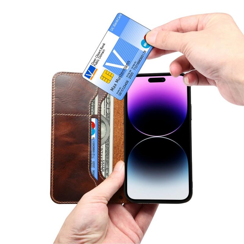 • DENIOR Anti-Drop Phone Case for iPhone 14 Pro Genuine Leather Protective Cover Magnetic Clasp Wallet Phone Case with Stand - Inner TPU case with outer high-quality Genuine Leather, durable to use - A multifunctional magnetic clasp can be used for case closure, stand, or hand strap - Built-in one cash pocket, one card slot, and one small pocket - Precise cutouts ensure full access to ports and function buttons, speakers, and camera - Provides protection against daily wear and tear, scratches, marks, and scrapes  - Supporting stand design is for convenient free-hands use when watching movies or reading - The Leather case looks really nice and is super easy to install/remove, keeping your phone in a simple design - Come with a wrist strap for carrying convenience