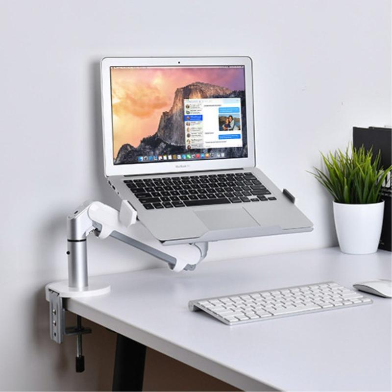 The mount features 360-degree screen rotation and multi-directional swivel functionality, allowing precise adjustment of viewing angles. Easily tilt, rotate and reposition your laptop or monitor for optimal comfort throughout the day.