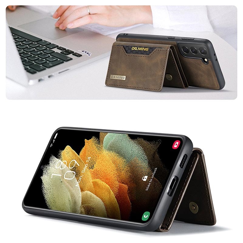 Unique design and true sophistication are what you get with this classy DG.Ming M2 protective case for Samsung Galaxy S21 5G. The cover features a detachable mini wallet with multiple compartments for storing your cards and money, that also doubles as a kickstand for comfortable hands-free media watching. The durable hybrid case made of rugged PC and flexible TPU is coated with the finest polyurethane for superior elegance and excellent protection. The case and the wallet use powerful magnets for firm bonding, allowing you to use the cover for Samsung Galaxy S21 5G with or without the wallet attached.