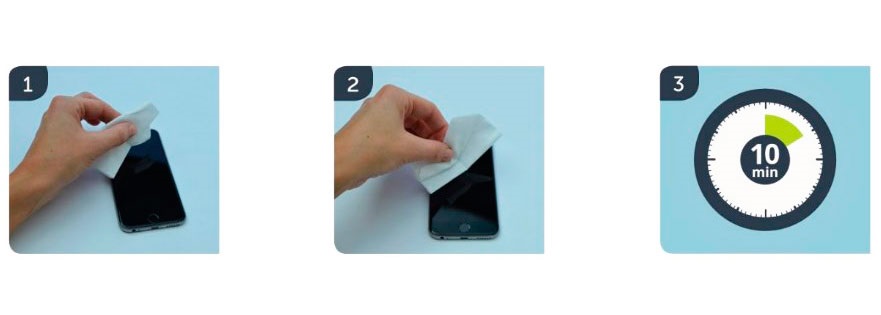 2. Dry the glass screen (and if applicable the back camera lens) with the dry wipe No. 2.