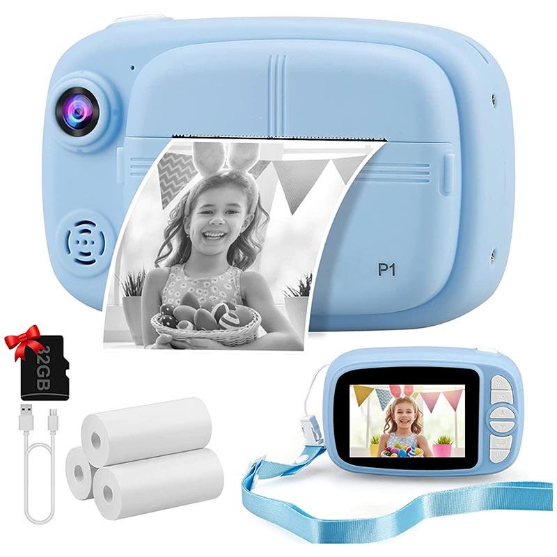 • Kids Digital Camera with Instant Thermal Printer & 32GB Memory Card - 12MP, 1080p