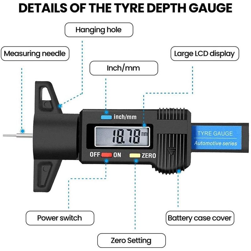 Ensure optimal tire performance and safety with the Digital Tire Tread Depth Gauge, designed for precise tread depth measurement, brake pad wear detection, and tire maintenance. Featuring a large LCD display, metric/inch conversion, and a zero reset function, this tool delivers high accuracy readings for cars, motorcycles, trucks, and SUVs. Its compact and durable design makes it an essential gadget for mechanics, car enthusiasts, and everyday drivers.