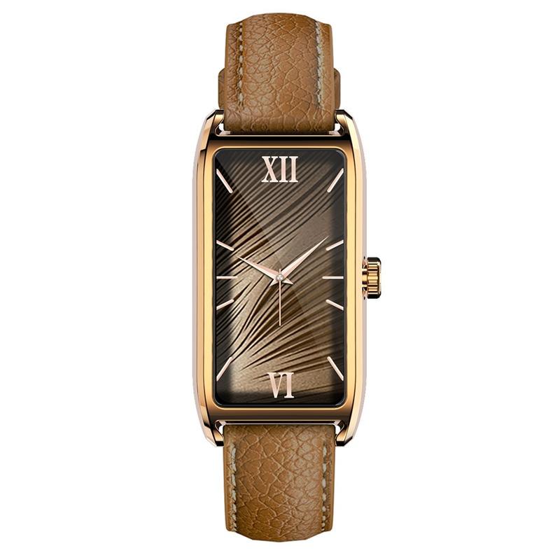 Inspired by modern watchmaking, the Dora T features a square case with smooth, rounded edges and delicate horizontal lines that exude mechanical precision and sophistication. Its super-fiber leather strap with a stainless-steel buckle ensures a soft, comfortable fit on any wrist.