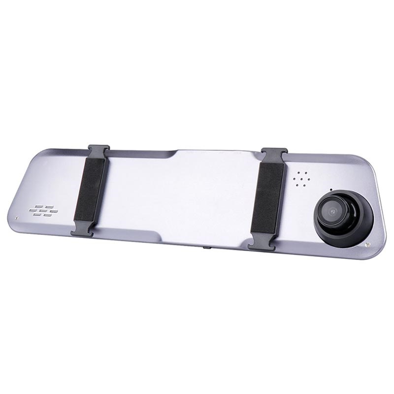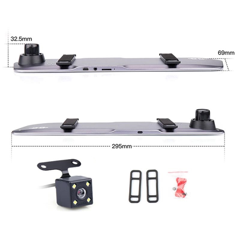 - DVR car camcorder features a mirror display and a 4.39" touchscreen (located on the mirror)