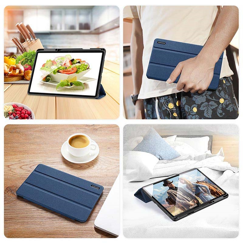 Suit up your Samsung Galaxy Tab S7+, Galaxy Tab S7 FE, Galaxy Tab S8+ in the Dux Ducis Domo case to give it protection and a stylish appearance. The shock-absorbing shell keeps your Samsung Galaxy Tab S7+, Galaxy Tab S7 FE, Galaxy Tab S8+ safe from scratches, dents, and drops, while the front flap folds into a convenient stand for typing or media watching. Upon that, the smart wake up/sleep feature ensures that not one percent of the battery goes to waste.