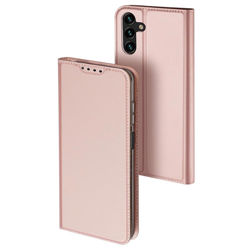 An elegant Dux Ducis Skin Pro flip case for Samsung Galaxy A14. The case guarantees protection from drops, scratches, and daily damage. The foldable stand allows hands-free media viewing. The case also contains an inside card slot for a credit card or ID.