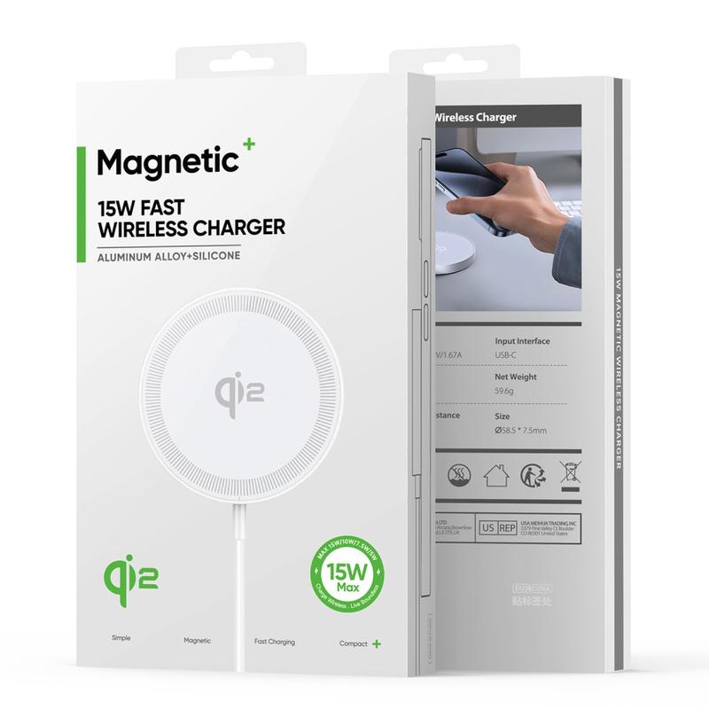 Introducing the Duzzona W18 Qi2 15W Fast Wireless Charger, the perfect charging solution for your iPhone 12, iPhone 13, iPhone 14, iPhone 15 or iPhone 16, iPhone 17, iPhone Air. This charger is MagSafe compatible and is made from durable aluminum alloy and silicone, ensuring long-lasting use. With 15W fast charging capability for the iPhone Air/17/16/15/14/13/12 series, you can quickly and efficiently power up your device. The charger also boasts wide compatibility, supporting Qi-standard devices for wireless charging and automatically matching 15W/10W/7.5W/5W charging power. Additionally, it features Foreign Object Detection (FOD) and multiple protections for worry-free charging. The strong magnetic attraction with built-in N52 powerful magnets provides 10x magnetic attraction for secure attachment.