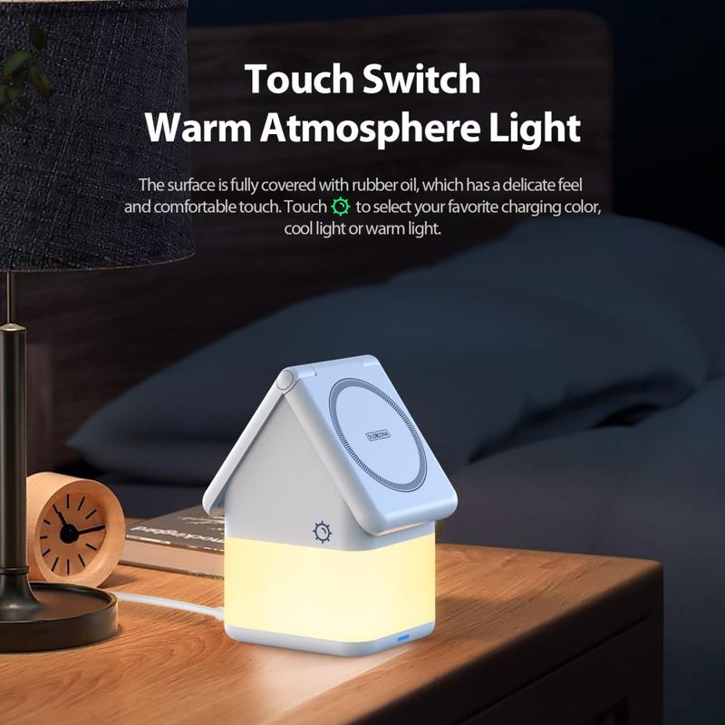 As a charging station, stand, and night light. It can charge three devices simultaneously, eliminating the need for multiple chargers and cables, reducing clutterFeather