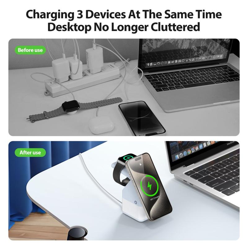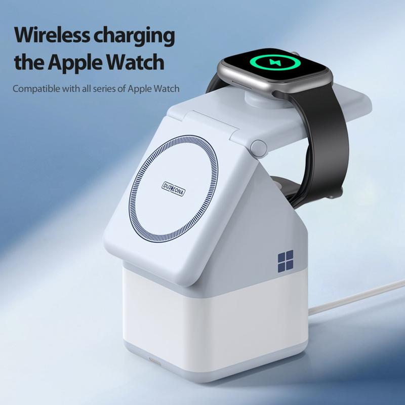Duzzona W20 4-in-1 Wireless Charging Station with Night Light for iPhone, AirPods, Apple Watch - 15W