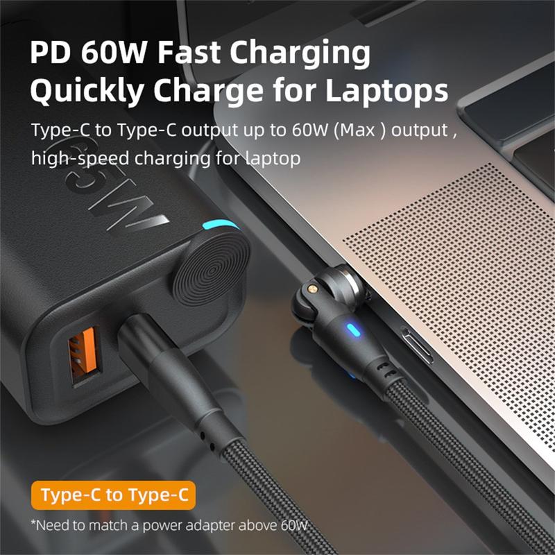 • E9 USB-C to USB-C Magnetic Cable 1m - 60W PD Fast Charging and USB 2.0 Data, 540-Degree Rotation, Nylon Braided