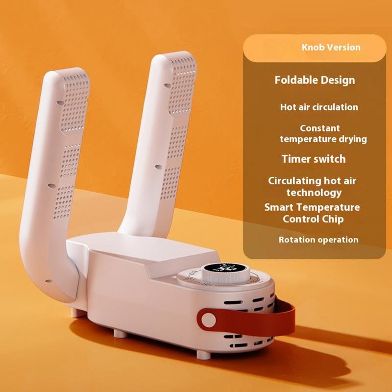 Keep footwear dry, warm, and comfortable with this foldable electric shoe dryer designed for everyday use at home. Using a 360° heat circulation system, it helps dry shoes more evenly from the inside—ideal after rain, snow, workouts, or long days on your feet. The extended air outlet supports a wide range of footwear, from short socks to taller boots, while smart constant temperature control helps dry efficiently without overheating delicate materials. A simple rotary knob gives you 4 timer options with automatic shut-off, so you can set it and forget it for safe overnight drying.