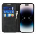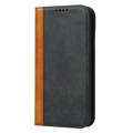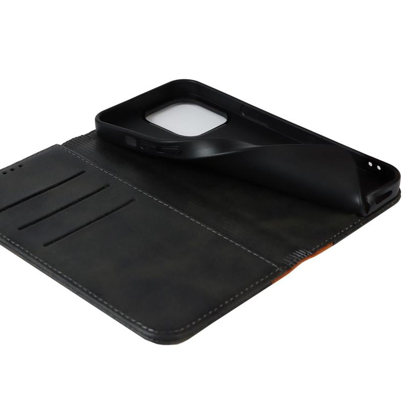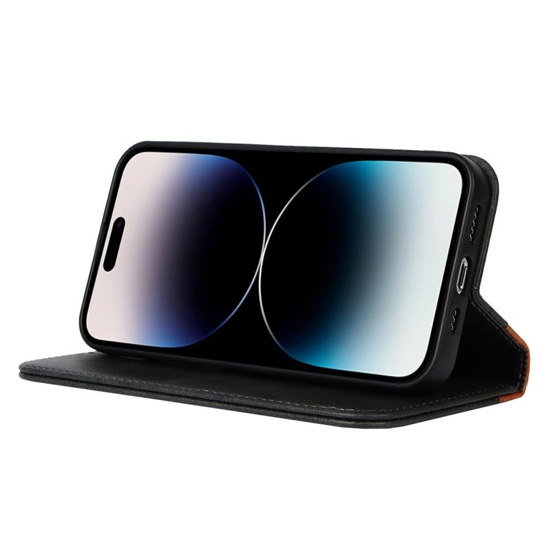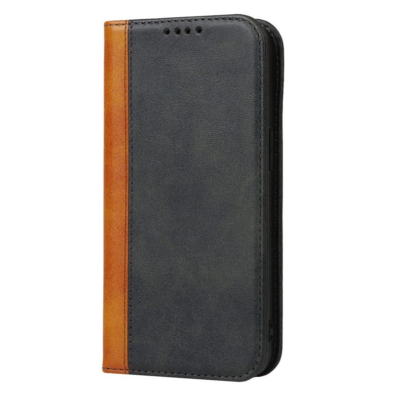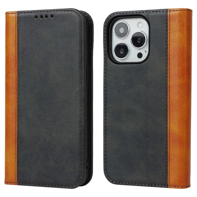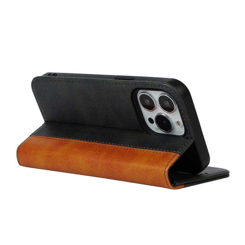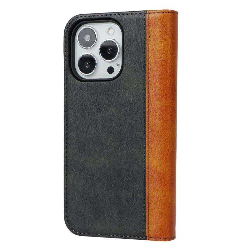 For iPhone 14 Pro Max Calf Texture PU Leather Shockproof Wallet Case Bi-color Splicing Magnetic Auto-absorbed Foldable Stand Cover