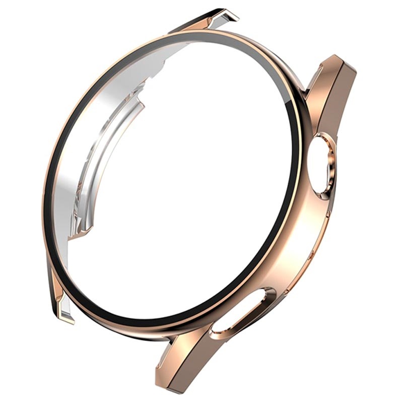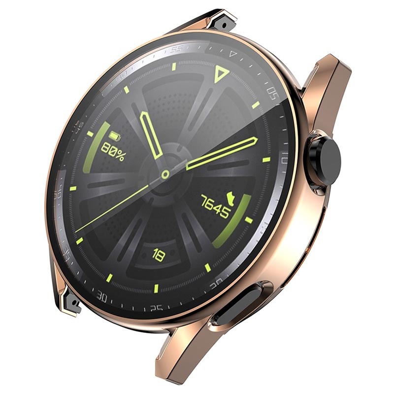 The 2-in-1 design consists of a premium polycarbonate case and built-in 9H screen protector, ensuring dust, dirt, damage, and scratch protection. It is slim and lightweight, adding almost no bulk, while the electroplated frame shines like metal. Tempered glass won't affect screen sensitivity, and a precisely molded case with cutouts preserves the functionality of the Huawei Watch GT 3.