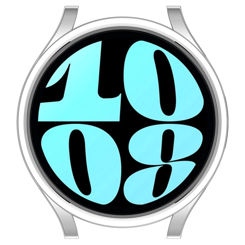The 2-in-1 design consists of a premium polycarbonate case and built-in 9H screen protector, ensuring dust, dirt, damage, and scratch protection. It is slim and lightweight, adding almost no bulk, while the electroplated frame shines like metal. Tempered glass won't affect screen sensitivity, and a precisely molded case with cutouts preserves the functionality of the Samsung Galaxy Watch6.