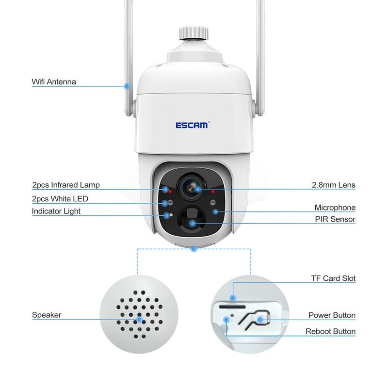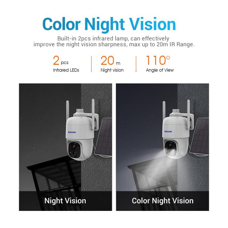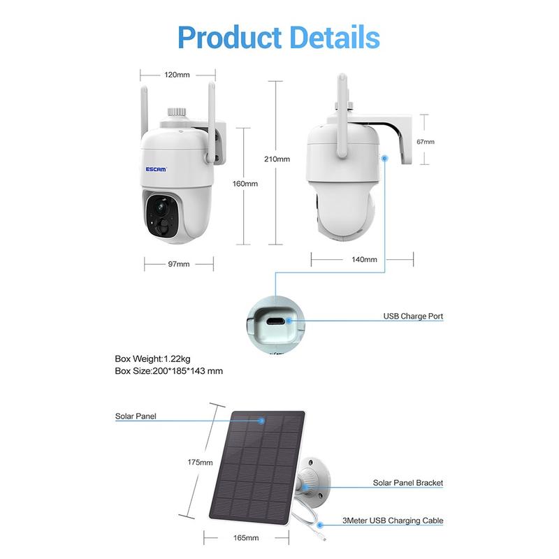ESCAM G24 H.265 3MP Full HD AI Identify Camera with Solar Panel PIR Alarm WiFi Camera Built-In Battery