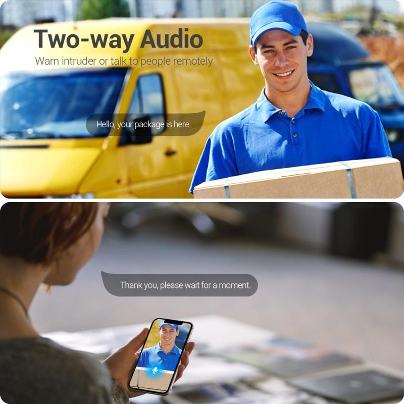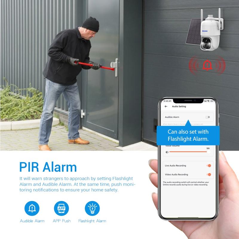 Support PIR alarm, APP message push, white light flashing, and alarm sound warning.