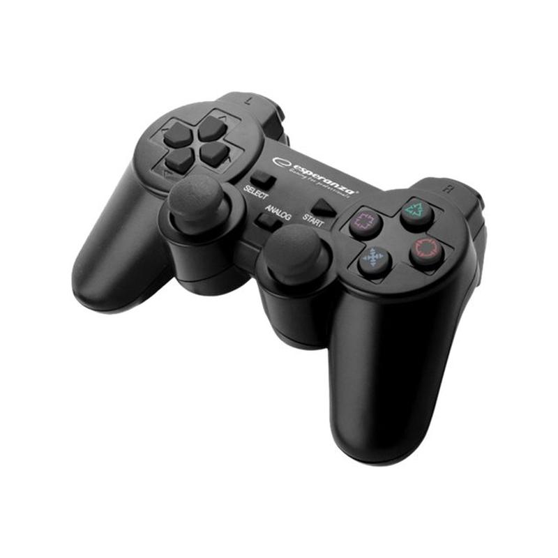 The Esperanza TROOPER gamepad is a wired controller designed for gaming on PC and Sony PlayStation 3. It features a variety of buttons and thumbsticks for precise control during gameplay.