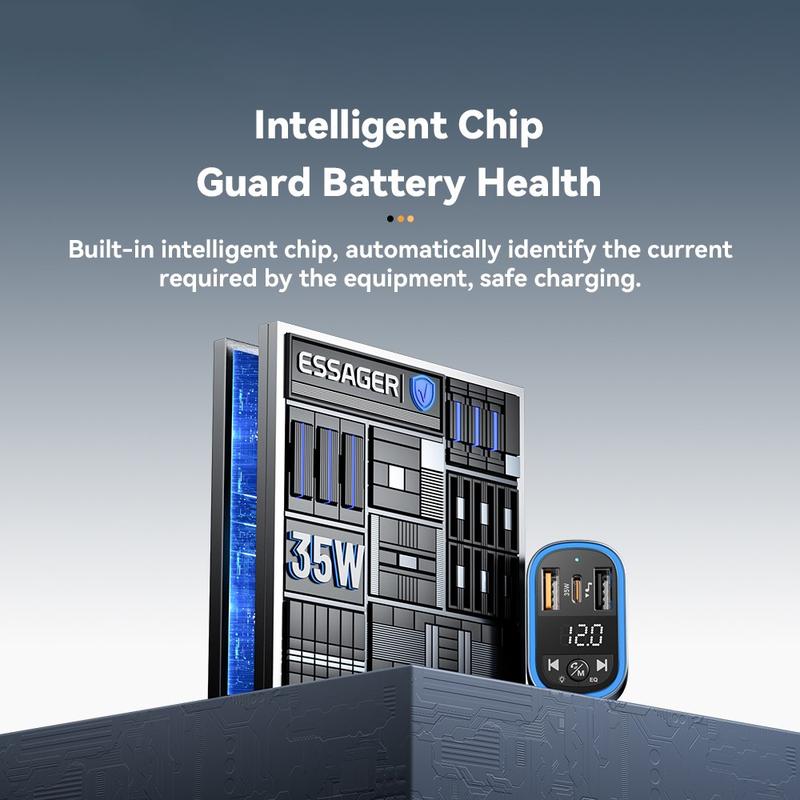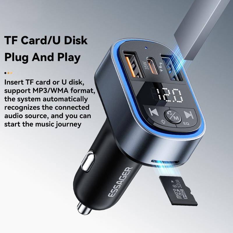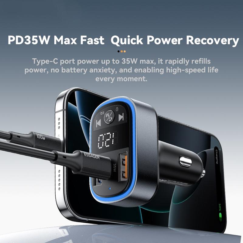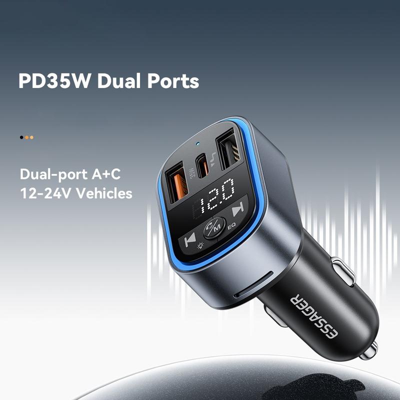 Essager ECCFM-CT0G-P 35W PD Fast Charging Car Charger with Dual Port USB-C/USB-A, Bluetooth 5.3 FM Transmitter, HD Call Microphone