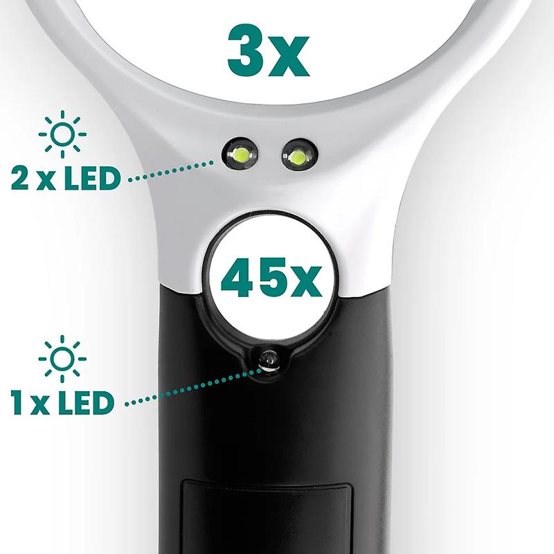 - Dual Magnification - Large 3× lens for everyday tasks and powerful 45× mini-lens for detailed inspection.