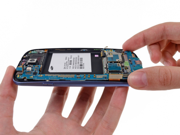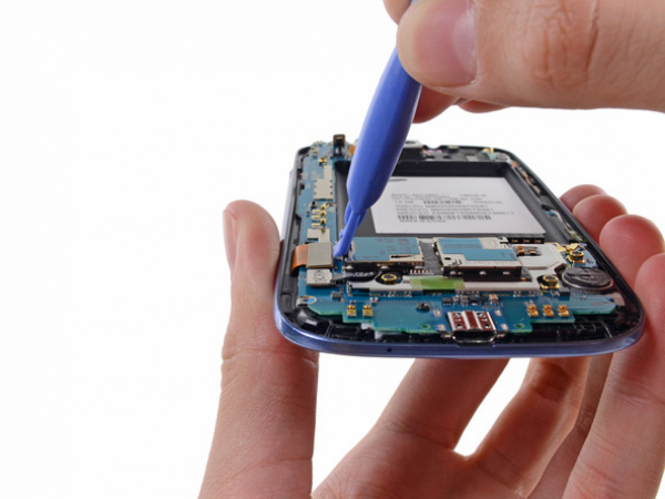 Insert the opening tool into the small notch above the battery and lever it carefully.