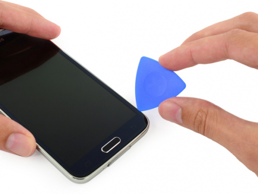 Slide the pick around your phone's corner gently, and stop before the speaker grille, located at the top of the phone.
